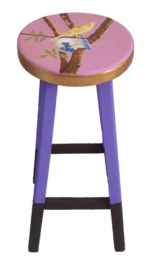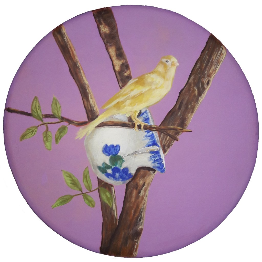 El canto del jardín El canto del jardín Acrílico sobre banco de madera Arte objeto Diámetro 30 cm. 2022 Relacionado